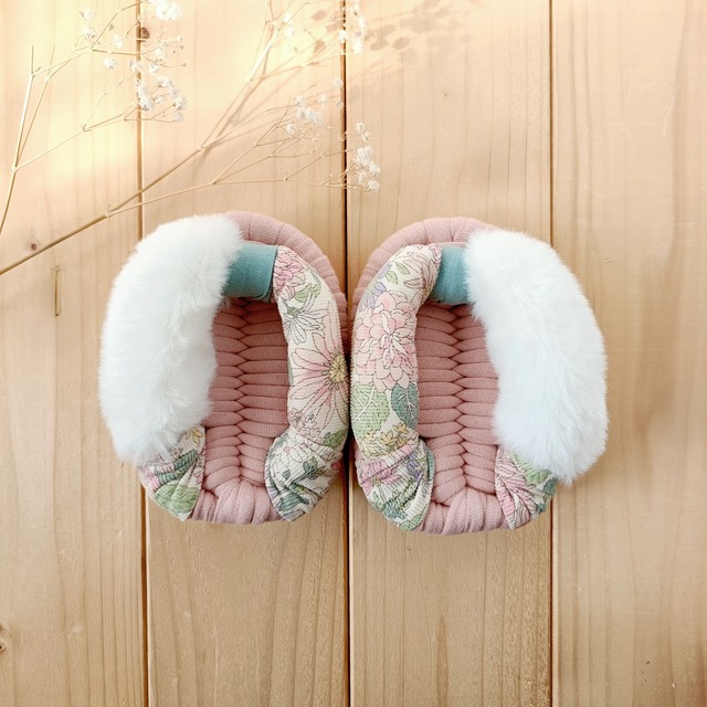 ふわふわファーで心ときめくおうち時間♡ 鼻緒も土台も滑らかで柔らかい生地を使用 足がふんわり軽くなる履き心地です。 これからの季節には5本指ソックスや レッグウォーマーなどと合わせて あたたかく過ごしてくださいね♪ …………………………………………………………………………………… 【TSUMUGIの布ぞうり】 ○土台は、お肌にやさしい綿100%のTシャツ生地。 夏は、汗ばむ足をさらりと快適に。 冬は、床の底冷えから足を守ってくれます。 〇土台の中芯には10mmのPPロープを使用し、ほどよい固さとふんわりもちっと弾力ある土台に仕上げました。履きこむほどに、足の裏にぴったりと馴染みます。 ○鼻緒を留める位置は、足指が土台に収まりやすいように左右で変えています。 ○鼻緒を留める布(前坪)には、柔らかなワッシャー生地を使用。 深みのある色合いとシワで、布ぞうり全体がリラックス感のある雰囲気に。 ○鼻緒の長さを簡単に調整できるよう、裏の結び目はリボンにしてあります。 〇汚れたら洗濯機で洗えます。 ………………………………………………………………………………… ☆大切な方への贈り物に… ギフトラッピング・ギフト配送(先方へ直接お届け)はこちらをご一読ください。 https://tsumugizori.base.shop/p/00006 ………………………………………………………………………………… 【サイズ】 約23㎝×約9㎝ (手作りのため、多少の誤差があります) ・履いているうちに少し広がります。 【素材】 ・土台…綿100%のニット生地 ・鼻緒…エコファー ポリエステル100% コーデュロイ綿100% 中はキルト芯を使用 ・中芯…PP ロープを使用しています (商品の特性上、中のロープが見える場合があります) 【お手入れ方法】 ・鼻緒が揺るんだ場合は、土台の裏から紐を引いて調整していただけます。 ・手洗い、またはネットに入れて洗濯機でお洗濯できます。 (乾燥機使用不可) ・色落ちを避けるため、別洗いをおすすめします。 【ご注意】 階段でのご使用や、床の材質によっては滑りやすい場合があります。十分ご留意の上ご使用ください。 ………………………………………………………………………………… 【ご購入前に必ずお読みください】 ○作品はひとつひとつ手作りのため、サイズには多少の誤差があります。 土台のニット生地には、いろいろな種類の綿100%生地を使用しております。いずれも柔らかく肌触りのよい生地のみをお選びしておりますが、作品により履き心地が多少異なる場合があります。 ○作品は当サイト以外での販売も行っております。 在庫はすべて共有しており、ご注文のタイミングによっては在庫がない場合もございますのでご了承ください。 ○写真は実際の色味や質感をお伝えできるように撮影していますが、ご覧いただいているモニターなどの環境により、実際の色味と多少異なる場合があります。 ○配送方法について (有料ギフトラッピンングをご希望の場合は、ゆうパックを推奨いたします) 【レターパック】…1足 【ゆうパック】…2足以上 ☆ゆうパックは時間指定のみ承っております。 備考欄にご希望の時間帯をご記入ください。 午前中 12~14時 14~16時 16~18時 18~20時 19~21時 20~21時 ご入金確認後、通常3日以内に郵便局より発送いたします。(土日祝除く) ○キャンセルついて 作品発送後のキャンセルはお受けできませんのでご了承ください。 ○返品交換について 衛生商品のため、明らかな不備があった場合を除きご遠慮いただいております。ご理解の程よろしくお願いいたします。 ご不明な点などございましたら、 お気軽にお問い合わせください。