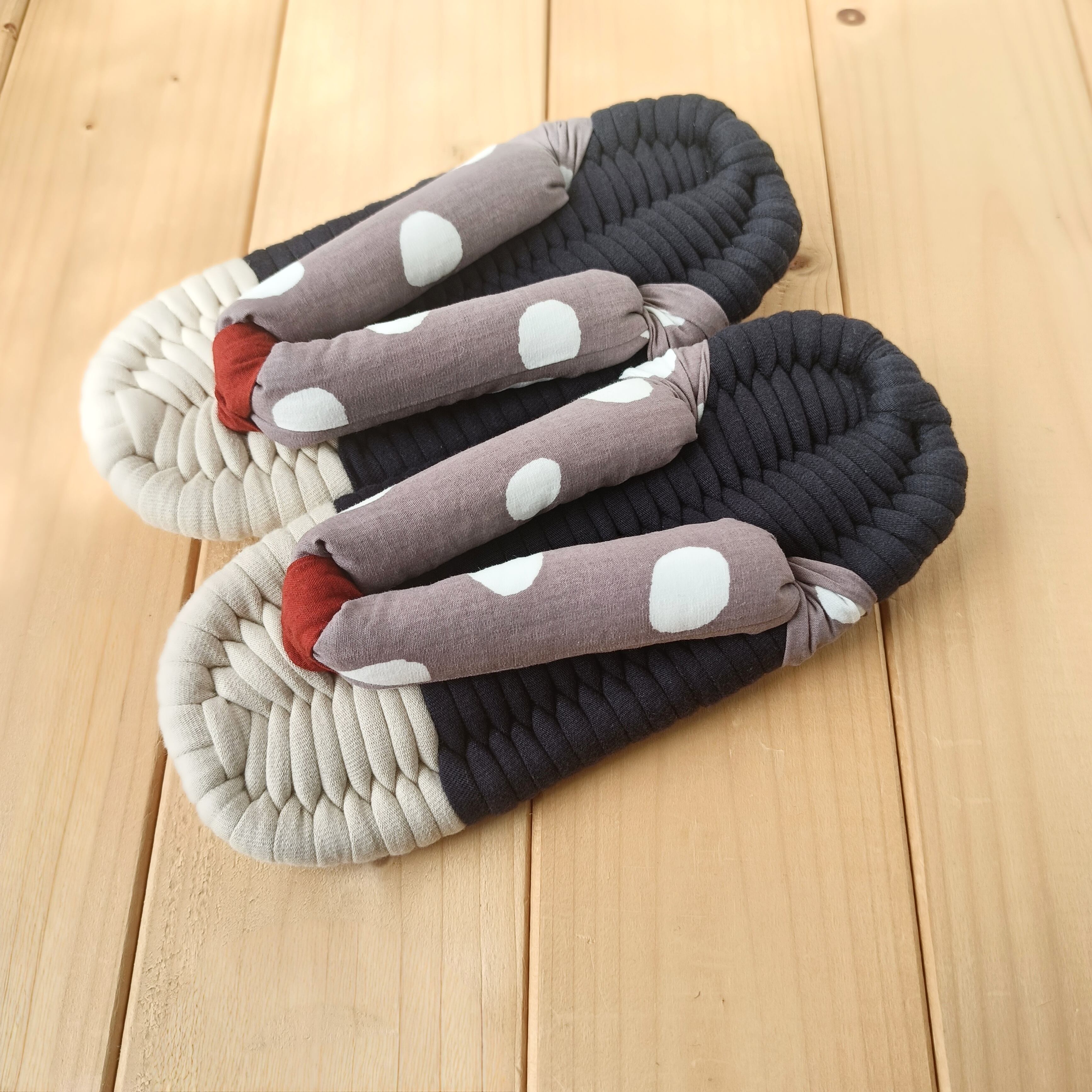 鼻緒をぎゅっとつかんで歩く布ぞうり。