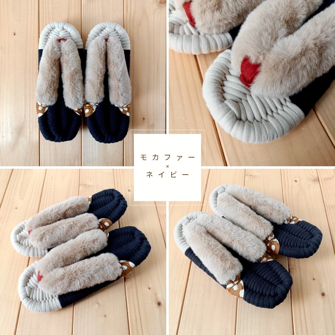 ○鼻緒を留める布(前坪)には、柔らかなワッシャー生地を使用。
