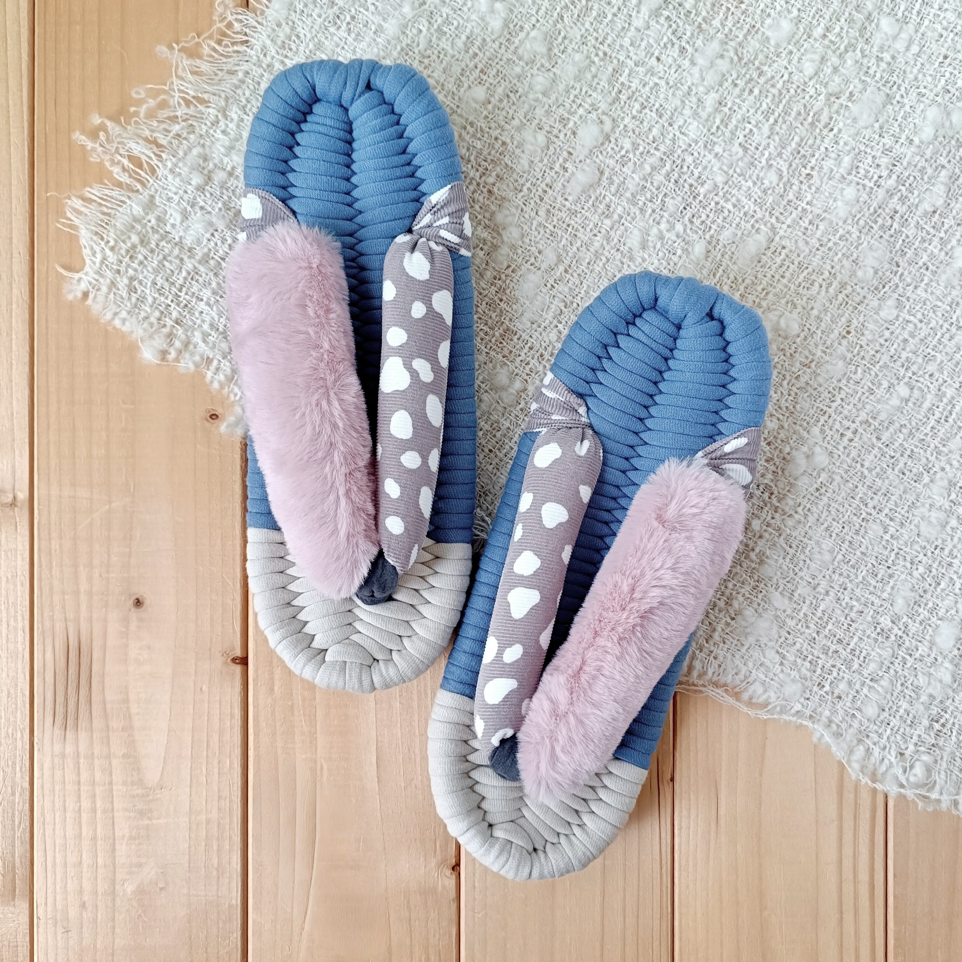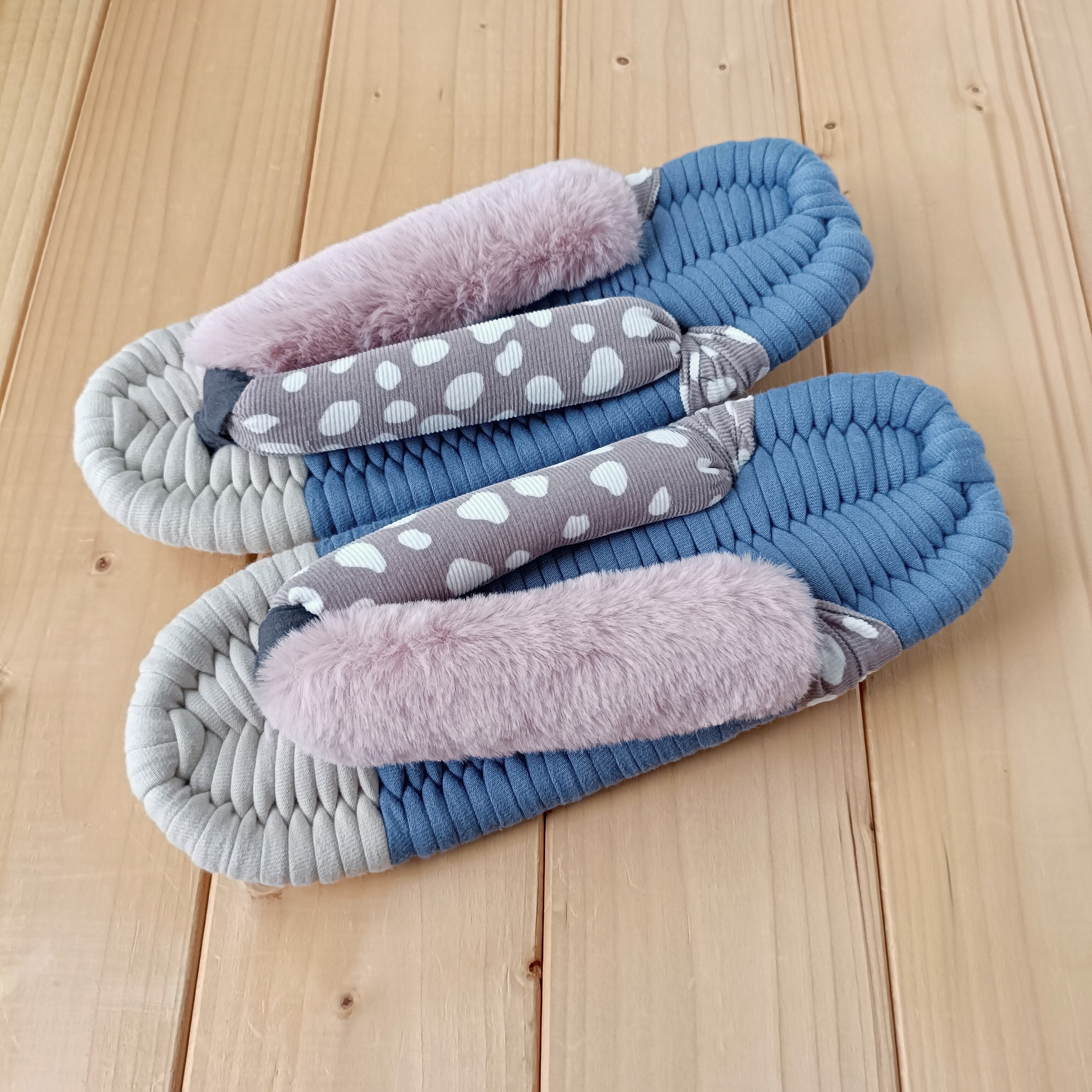 〇土台の中芯には10mmのPPロープを使用し、ほどよい固さとふんわりもちっと弾力ある土台に仕上げました。履きこむほどに、足の裏にぴったりと馴染みます。