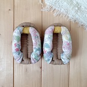 土台・鼻緒には、いろいろな種類の生地を使用しております。いずれも柔らかく肌触りのよい生地をお選びしておりますが、作品により履き心地が多少異なる場合があります。