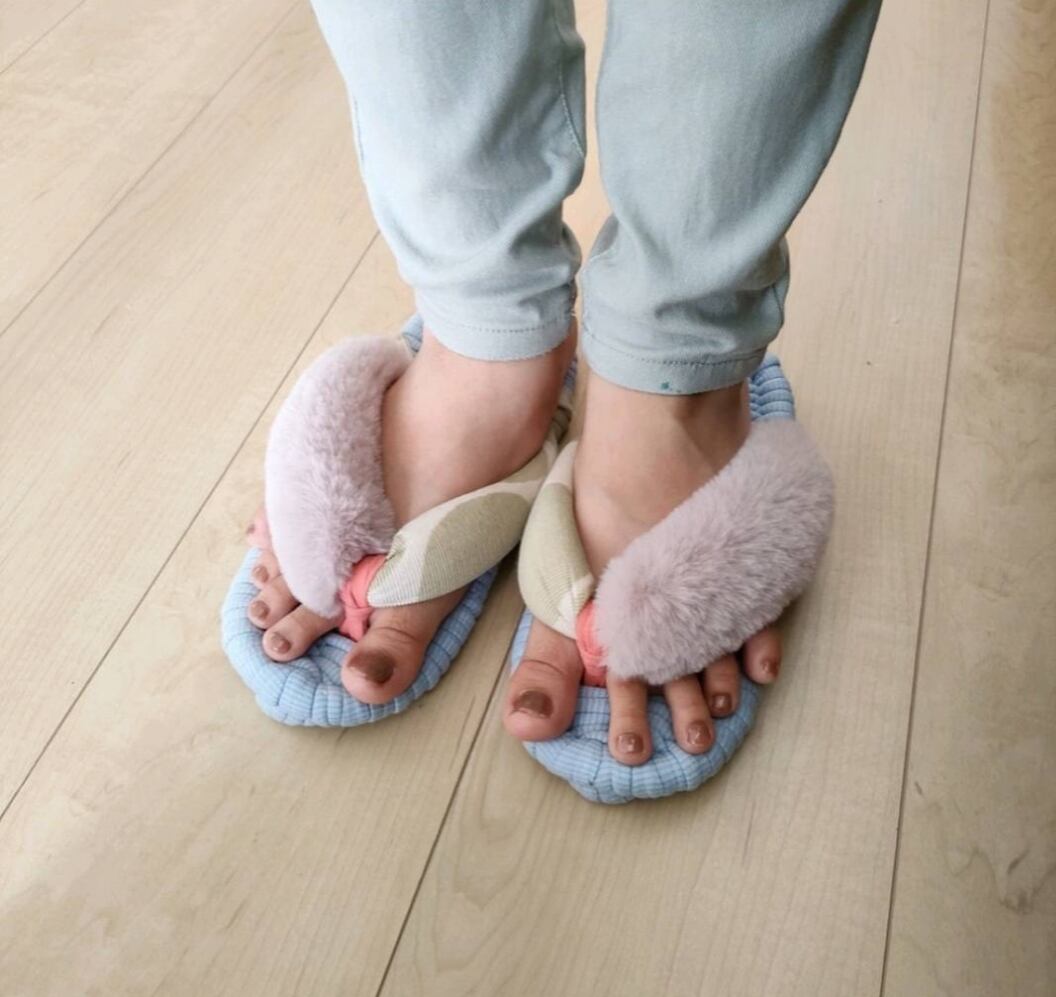 深みのある色合いとシワで、布ぞうり全体がリラックス感のある雰囲気に。