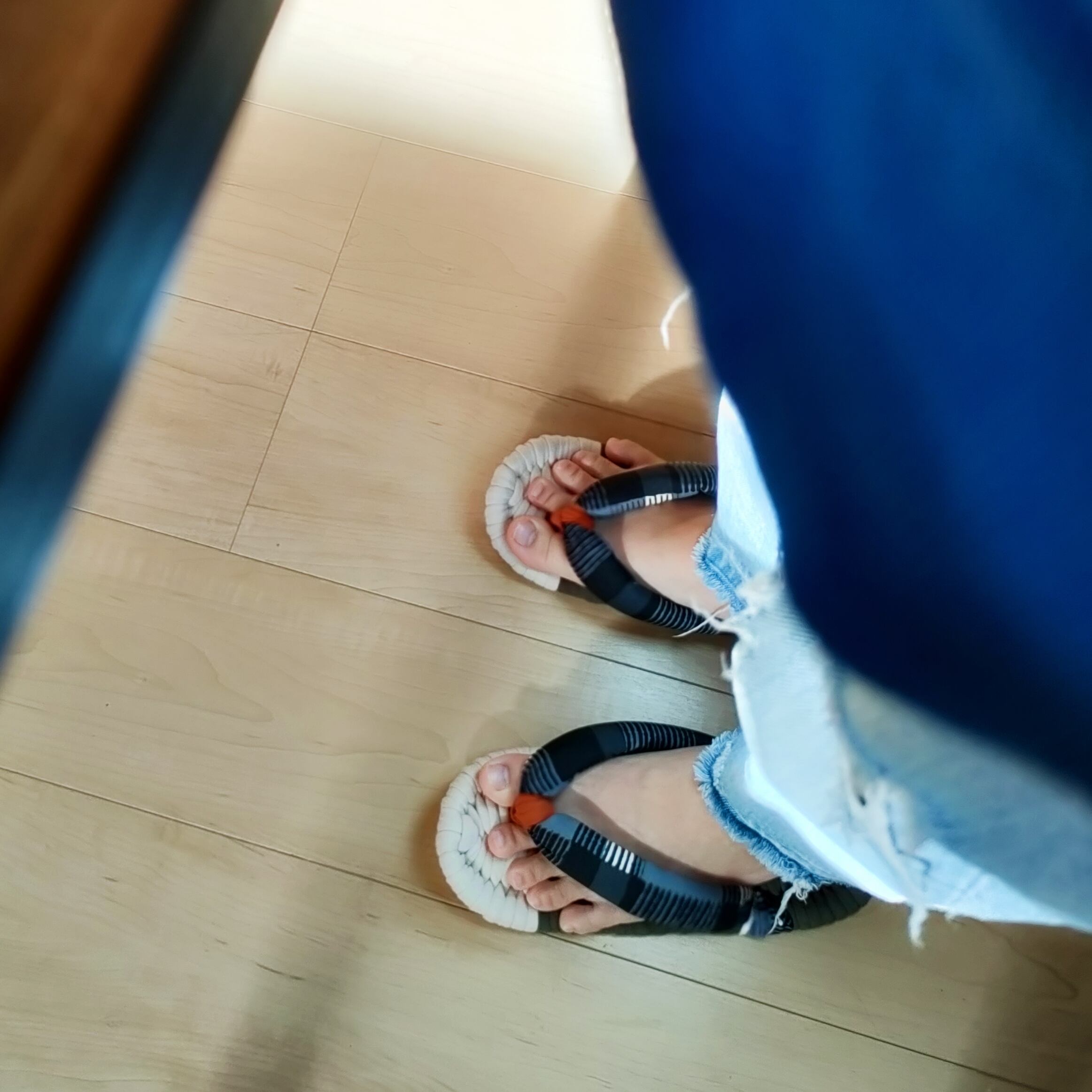 〇土台の中芯には10mmのPPロープを使用し、ほどよい固さとふんわりもちっと弾力ある土台に仕上げました。履きこむほどに、足の裏にぴったりと馴染みます。