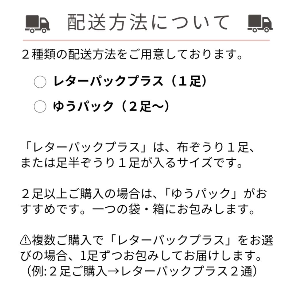 ☆複数ご購入でレターパックをお選びの場合は、1足ずつ梱包してのお届けとなります。