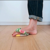 ぞうりの土台の前に足指を出して、かかとを床につけて履くと、まるで地面をつかみながら歩くような不思議な履き心地。