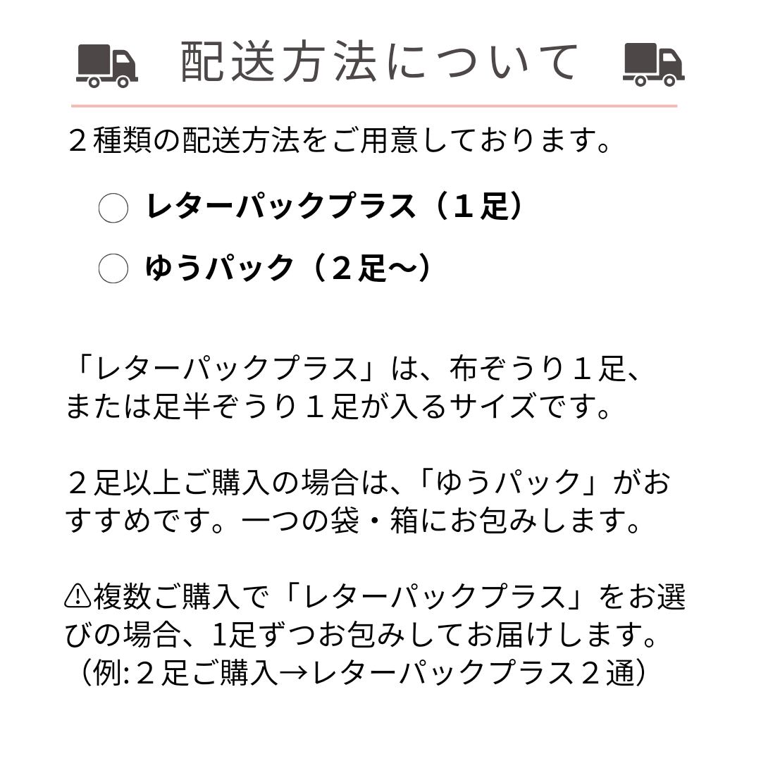 ☆複数ご購入でレターパックをお選びの場合は、1足ずつ梱包してのお届けとなります。