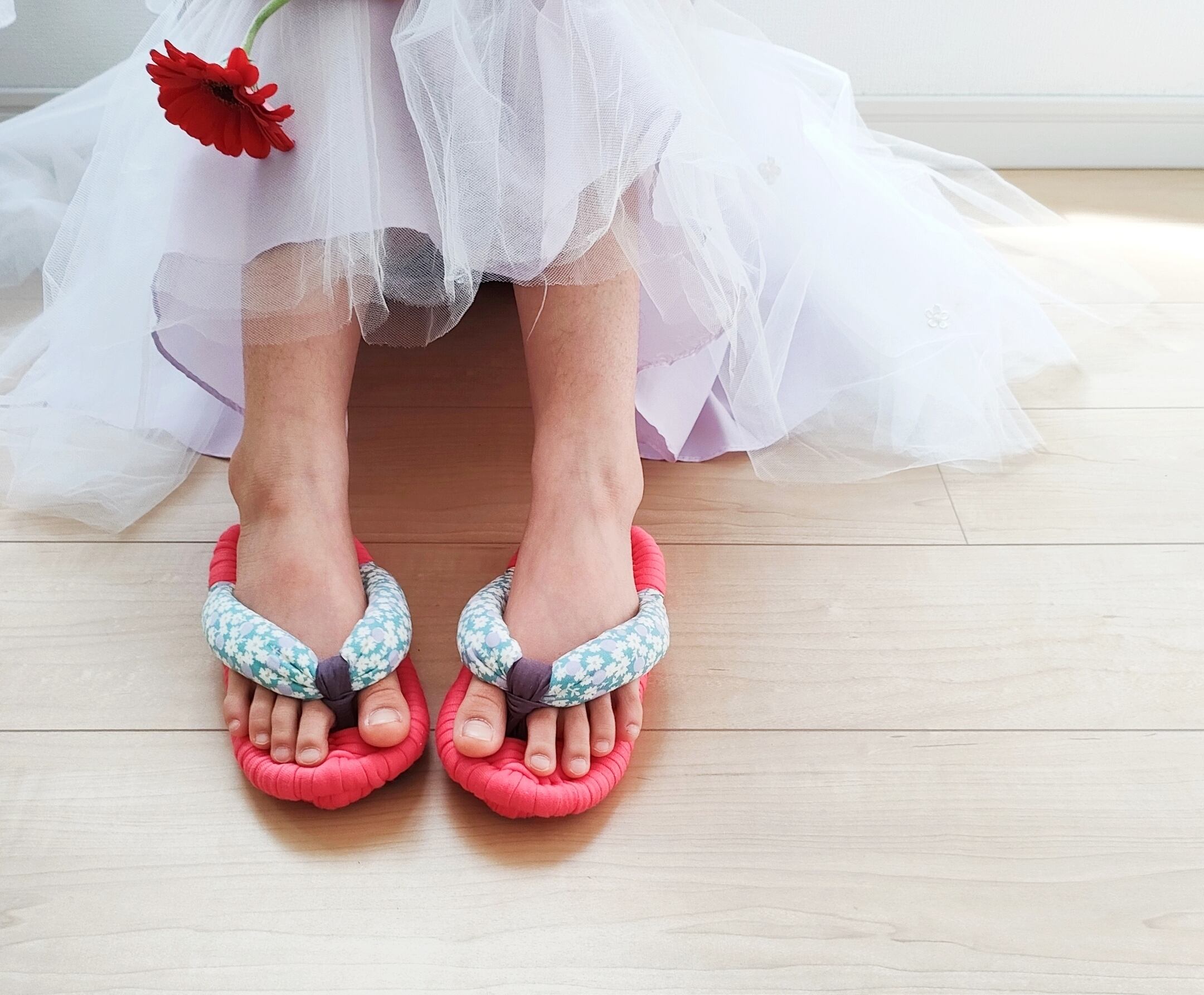 鼻緒をぎゅっとつかんで歩く布ぞうり。