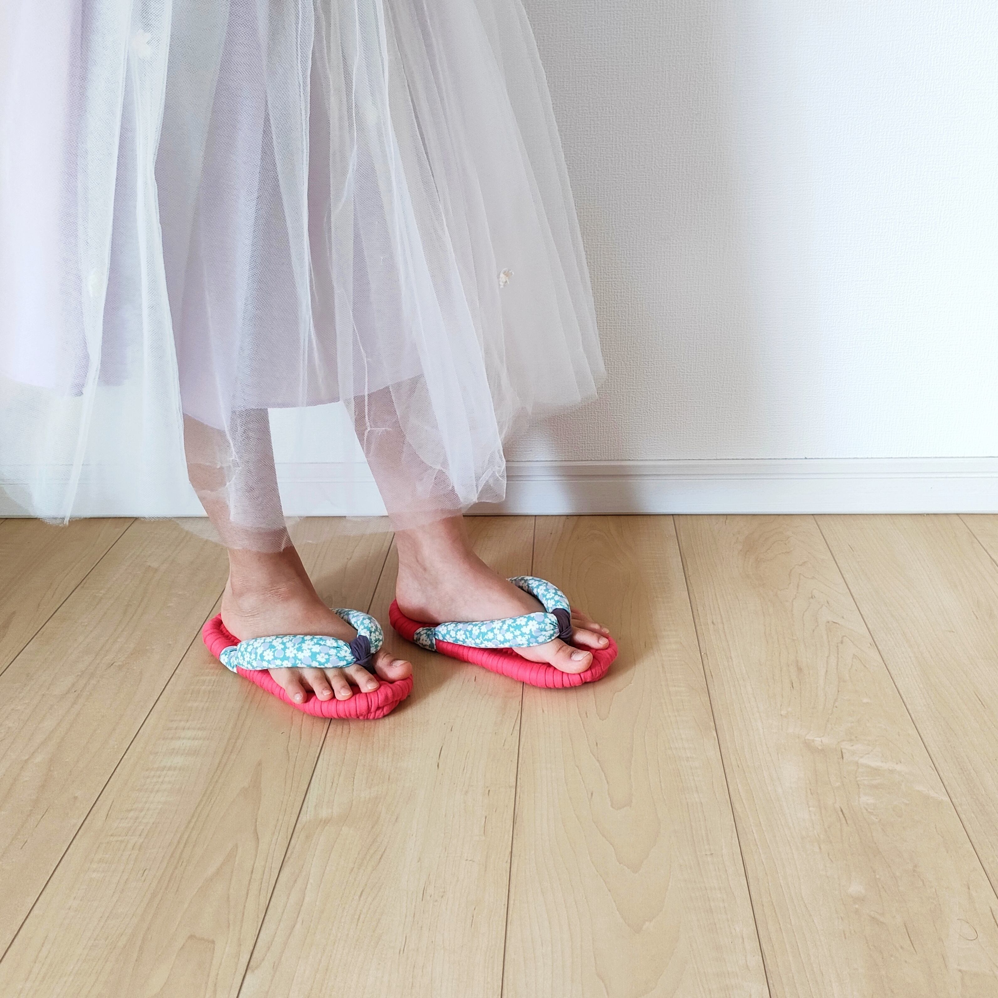 鼻緒をぎゅっとつかんで歩く布ぞうり。