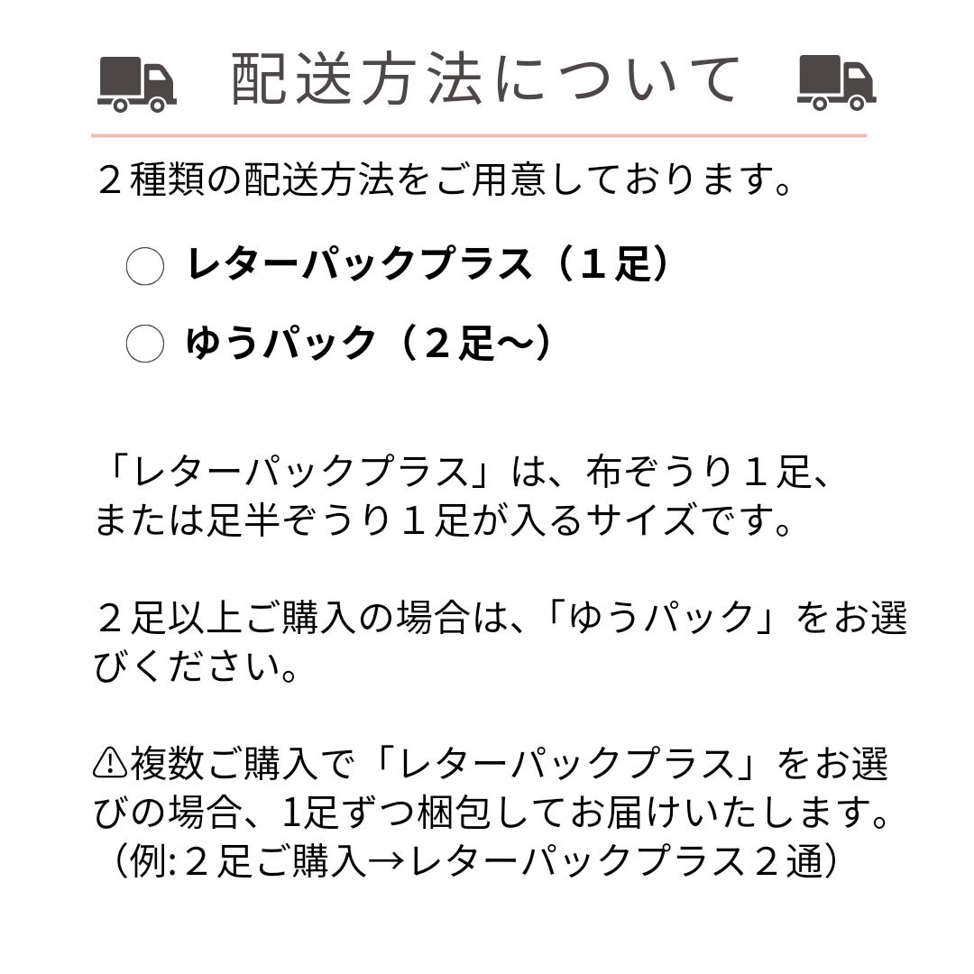 ☆複数ご購入でレターパックをお選びの場合は、1足ずつ梱包してのお届けとなります。